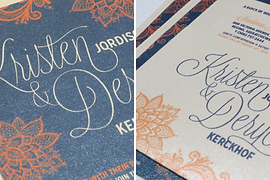A fun and fresh wedding invitation design, and Klear Design Studio's first foreign language project. We're excited breaking into this new field! Take a look, and let us know what you think!